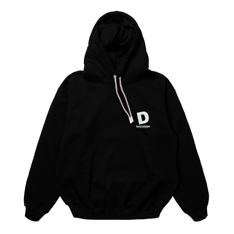 El logo blanco de Dacusan Music se presenta con claridad y elegancia en el pecho delantero y de forma prominente en la espalda, creando un diseño distintivo y moderno.